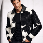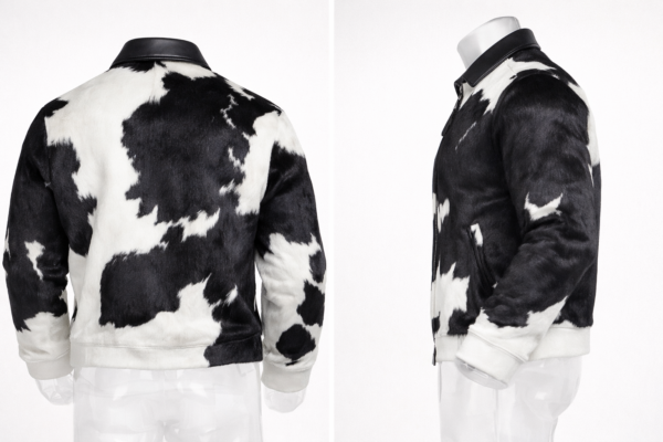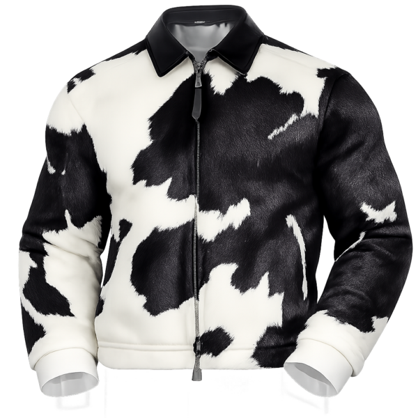 Men’s Cowhide Pattern Bomber Jacket (Black & White) – Statement Outerwear