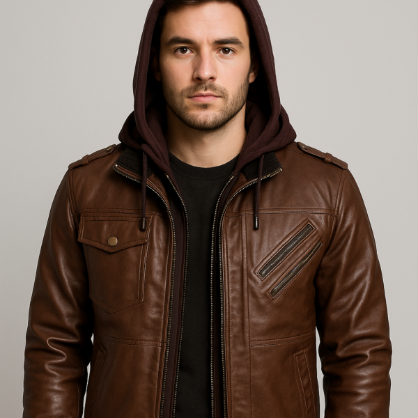 Upgrade your everyday style with this Men’s Leather Bomber Jacket, crafted from 100% genuine lambskin leather and designed for men who want versatility, comfort, and a timeless rugged look. Featuring a fully detachable hood, this jacket easily transforms from a casual streetwear piece into a clean, classic leather bomber — giving you two styles in one.